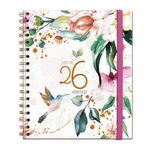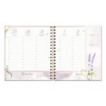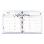 Agenda semanal de escritorio con diseño Floral: 17×20 cm, semana a la vista (vertical), 160 páginas en papel de bambú color crema (100 g). Encuadernación espiralada, tapa dura con folia, barniz brillante y relieve (acabado mate), cierre elástico y cinta marcadora de satén.