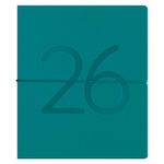 Agenda semanal de pasta semi flexible de PU, con textura de líneas diagonales en la parte superior y lisa en la parte inferior. Cuenta con 98 hojas (196 páginas). Contiene: cuadro de dedicatoria, hoja de datos personales, calendario 2026 y días festivos, calendarios 2025 a 2029, planificador anual de gastos, planificador de proyectos (5), planificador anual, planificadores mensuales (12), agenda semanal, directorio de contactos, teléfonos de interés, hojas para notas.