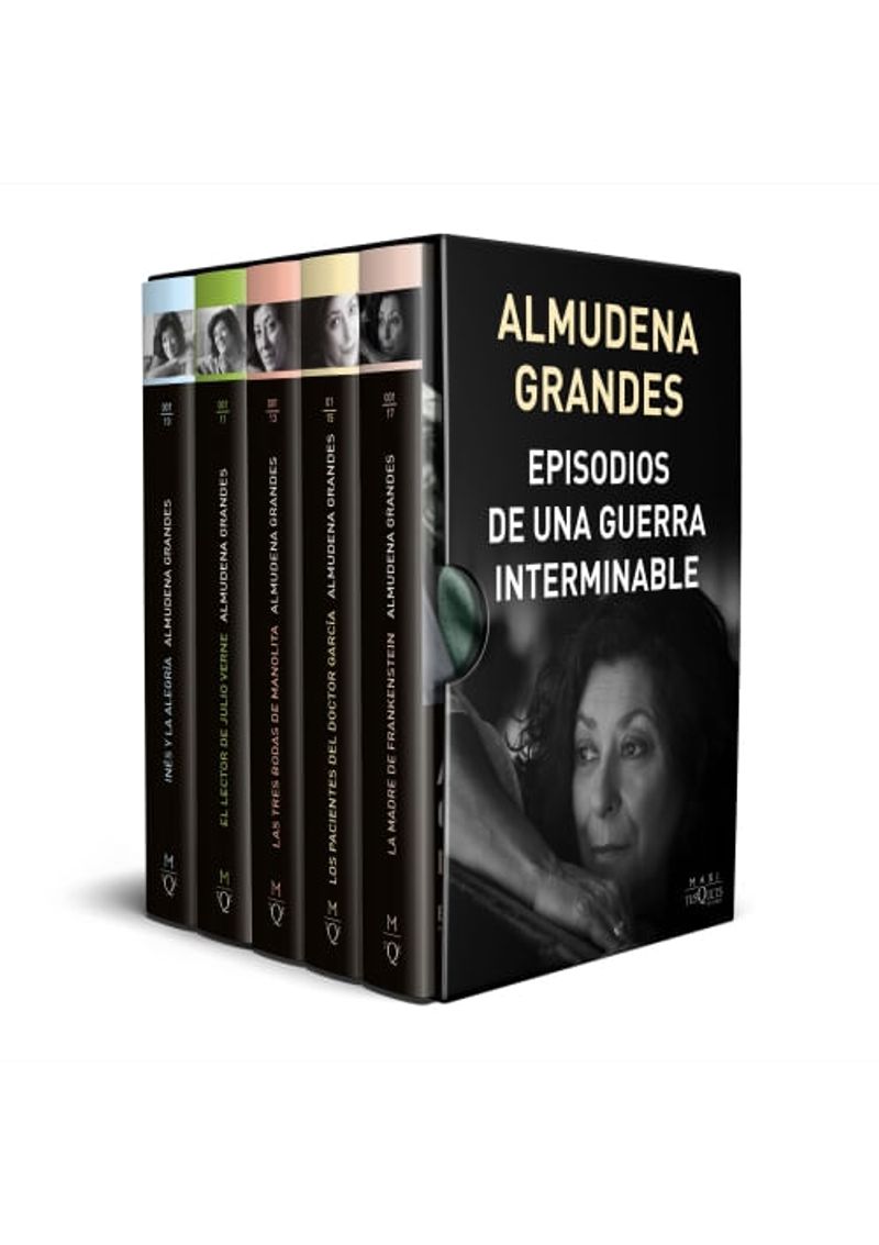 Estuche que incluye Inés y la alegría, El lector de Julio Verne, Las tres bodas de Manolita, Los pacientes del doctor García y La madre de Frankenstein.Episodios de una guerra interminable es el proyecto narrativo más exitoso de Almudena Grandes. Se compone de novelas independientes que narran momentos significativos de la resistencia antifranquista en un período comprendido entre 1939 y 1964, y cuyos personajes principales interactúan con figuras reales y escenarios históricos. Un homenaje a los Episodios nacionales de Benito Pérez Galdós.Inés y la alegríaToulouse, verano de 1939. Inés vive recluida y vigilada en casa de su hermano, delegado provincial de Falange en Lérida. Ha sufrido todas las calamidades desde que, sola en Madrid, apoyó la causa republicana durante la guerra, pero ahora, cuando oye a escondidas el anuncio de la operación Reconquista de España en Radio Pirenaica, Inés se arma de valor, y de secreta alegría, para dejar atrás los peores años de su vida.El lector de Julio VerneNino, hijo de guardia civil, tiene nueve años, vive en la casa cuartel de un pueblo de la Sierra Sur de Jaén, y nunca podrá olvidar el verano de 1947. Mientras descubre un mundo nuevo gracias a las novelas de aventuras que le convertirán en otra persona, Nino comprende una verdad que nadie h(más...)
