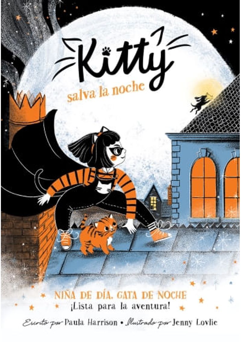 Kitty puede hablar con los animales y tiene superpoderes felinos, pero... ¿estará lista para ser una superheroína como su madre? En Kitty salva la noche... Kitty se muere de ganas de ir al museo y ver la preciada estatua del Tigre Dorado con sus propios ojos. La leyenda dice que aquellos que la posean pueden hacer realidad todos sus deseos. En compañía de su gato Mandarino, decide colarse en el museo por la noche, cuando no haya nadie que pueda descubrirlos, ¡pero alguien roba la estatua en frente de sus narices! ¿Podrá Kitty recuperarla de las garras del ladrón antes de que amanezca? ¡Únete a Kitty y a su pandilla de gatos para vivir fascinantes aventuras a la luz de la luna!
