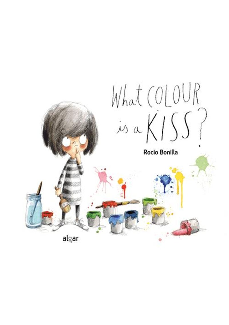 Monica loves painting a lot of things in colour: red ladybugs, blue skies, yellow bananas but she has never painted a kiss. What colour is it? Is it red like a delicious tomato sauce? No, it isn’t, since red is the colour of annoyance. Is it green like the nice crocodiles? No way, because green is the colour of vegetables and she doesn’t like eating them! How could she find out what colour is a kiss?
